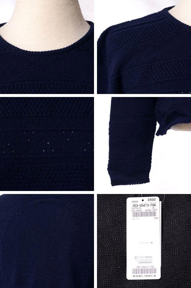 ルシアンペラフィネのカシミヤニットプルオーバー。背中にスカルが描かれた美しい模様編みのセーター。上品なネイビーカラー。暖かく軽い最高級のカシミヤ素材。シンプルに一枚でも様になり、ブラウスなど挟んでもお召し頂けます。贅沢な着心地のアイテムです。
