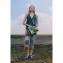 リゾートコレクションルック2。ショート丈バギープリントパンツ。ナチュラルなアースカラーベースにしたパッチワーク風プリントに英字プリント。ナチュラルなアースカラー、グリーンや薄いブルー、エンジ、カラシなどの深いトーンを織り交ぜた美しいカラー。さらりとしたややハリ感のある薄手のシルククレープ素材。涼し気な夏に着たいショート丈ワイドパンツ。ハイウエスト、後ろ側ポケット付き。前ファスナーの、サイドポケット。リラックスした雰囲気のエレガントなアイテム。