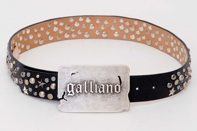 ガリアーノのバッグル付き+スタービスや様々なビスが付いたベルト。