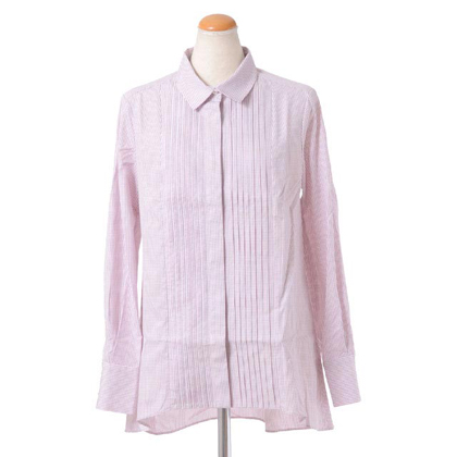 スタジオヨコより、フロントタック使いの七分袖ブラウスが入荷しました!お顔映りをきれいに見せてくれて、品よく着こなせるブロックチェックピンク。フロント部分はタック使いで袖部分はふんわり。大きすぎない襟元、裾がひろがったデザイン。後ろ部分が長いシルエットで体型カバーできるブラウスです。着心地の良いイタリア製のコットン。薄手でさらりとお召しいただけるアイテムです。