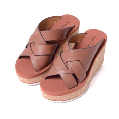 シーバイクロエ (see by chloe) 船底編み上げコルクソールサンダル カーフスキンなど ブラウン