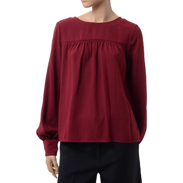 秋のバーガンディカラーのエレガントなブラウスです。背中にリボンタイをあしらった一枚で様になる秋のアイテム。カラーも美しい色で、ボトムスを選びません。着心地の良いストレッチジャージーです。カラー展開、バーガンディ、ブラック。
