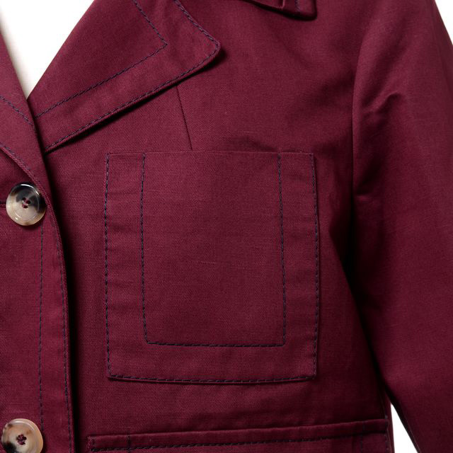 マルニ (Marni) ステッチ入り七分袖ジャケット コットンリネン ダークバーガンディ