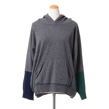 クイーンアンドベル (queene and belle) フード付きセーター スコットランドカシミア ダークグレーマルチ