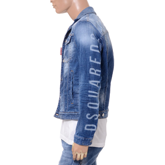 ディースクエアードよりデニムジャケット。洗いをかけ、ダメージ加工を施したデニム素材。伸縮性のあるコットンストレッチデニム素材。ダンジーンズジャケットはちょうどよい着丈の長さで、やや細身のデニムジャケット。
