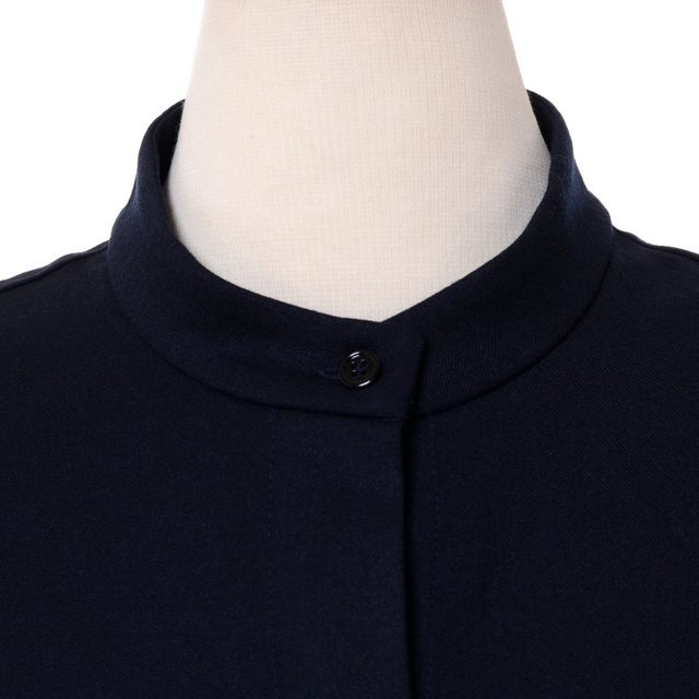 上質な羊毛ストレッチの生地で作られたスタンドカラーのワンピース。前開きタイプでコートとしても羽織ることもでき、ワンピースとしてシンプルにも纏うこともできる着心地の良いアイテムです。両サイドにポケット付き、裾はスリット入りで一枚で美しいアイテムです。優しいミッドナイトネイビーで合わせやすいアイテムです。