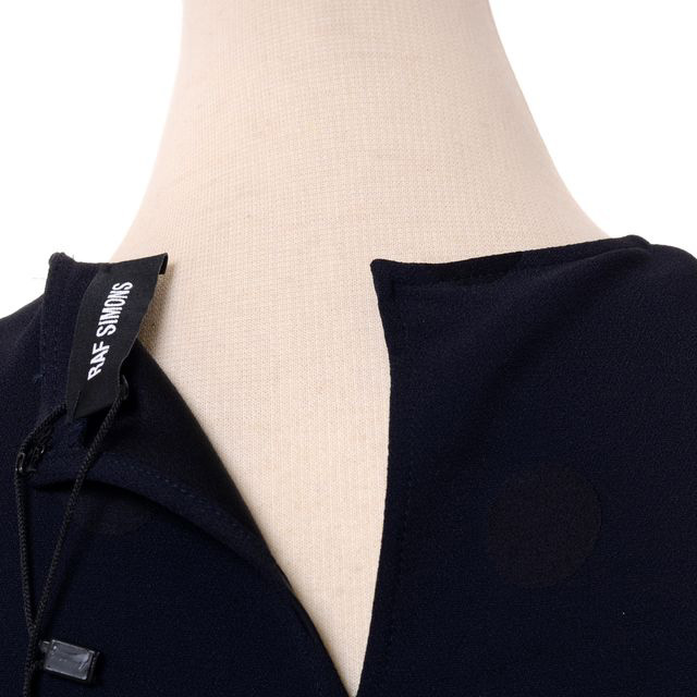 ラフシモンズ (RAF SIMONS) プリントポケットホールドット長袖ワンピースドレス アセテートヴィスコース ダークネイビーブラック