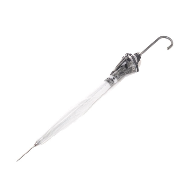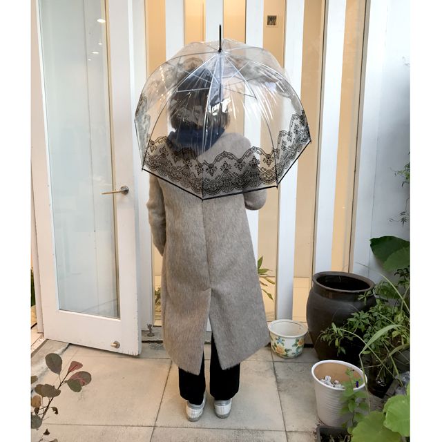 透明にレースプリントされたキュートな長傘。縁取りの黒と開いたときの丸いフォルムが可愛い傘です。高級感のある持ち手、シルバーの石突き。雨の日も楽しくなりそうな、そんな傘です。すべてフランスの工房で手作りで作られています。