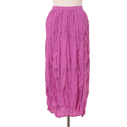 サテンシルクの皴加工スカート。ウエストはゴム。とても薄手で涼し気なスカート。透かしのニットのスカートのインナーにぴったりなアイテムです。カラー展開、グリーン・ピンク。
