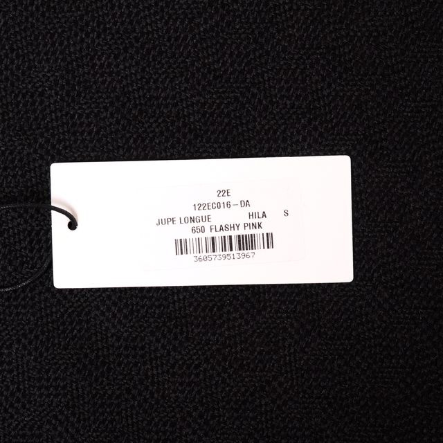 PINK LONG SKIRT IN RIBBED KNIT 踊るようなフレアーニットスカート。太めのリブニットで裾が広がるデティール。ウエストはゴムでラメ入り。同じトーンのニットと合わせて着こなしたいスカートです。カラー展開、ブラック・フラッシーピンク。