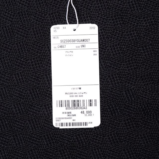 アルパカウール製フリンジスカーフ。斜体のマルニロゴラベル付き。