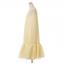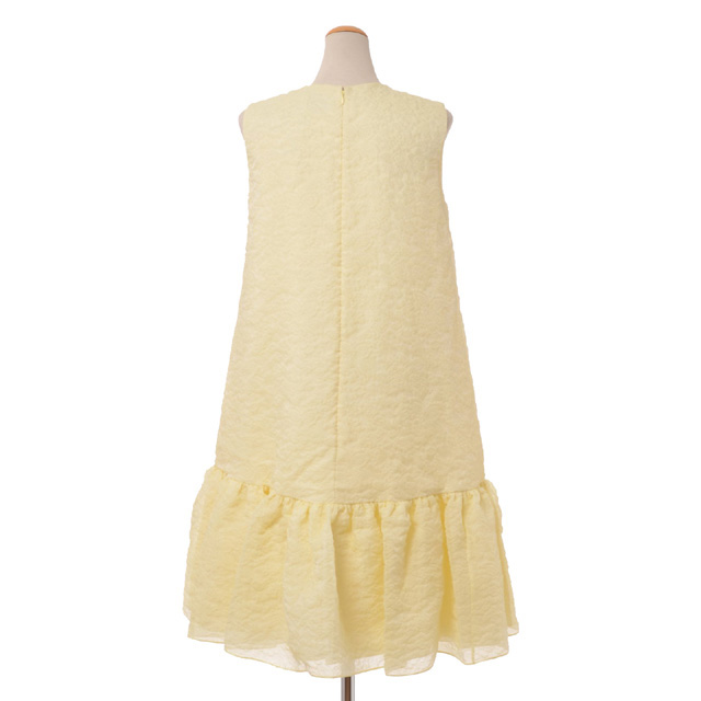 エレガントなメイプルドレスは、オーガンジークロック、ジャガード織でつくられたアイテムです。カラーは優しいレモン色。落ちたウエストマーク、裾がふんわりと広がったロマンテックなアイテムです。パーティシーンに活躍しそうです。フラットシューズとのバランスがとても良いアイテムです。