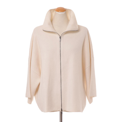 ジェントリーポルトフィーノのスタンドカラーニットジャケット。素材は圧縮されたカシミア。とても暖かな羽織ものです。ダブルジッパー、ドロップショルダー、ゆったりとしたフォルム。寒い時期にさっと羽織ることが出来るアイテムです。カラー展開、ブラック・ホワイト。