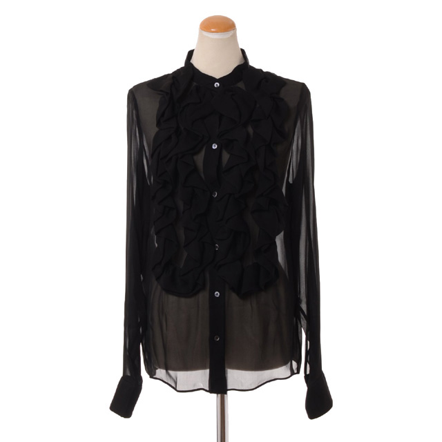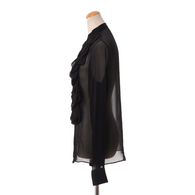 ロシャス (ROCHAS) フリル使い長袖ブラウス シルクシフォン ブラック