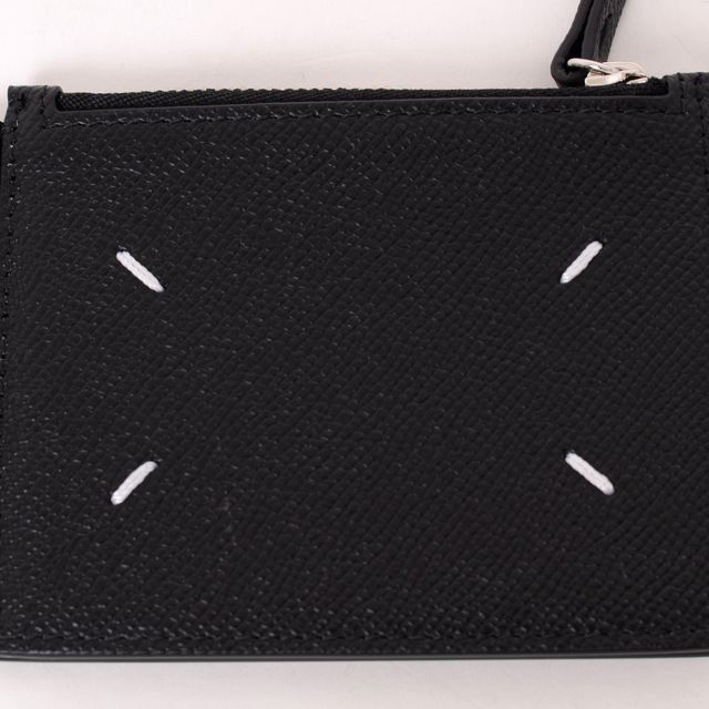 メゾン マルジェラからマネークリップが入荷しました。キズが付きにくいエンボスレザーでつくられたマネークリップ。内側はソフトレザー。ファスナー式コインケース、カード入れ×3。二つ折りで、真ん中にシルバーのクリップ付き。高級感のあるブラックカラー。クリップは動かせて紙幣をはさむことができます。4本ステッチ入りで、内側にシルバーカラーでロゴ入り。高級感のあるブラックカラー。傷が付きにくいエンボスレザー。