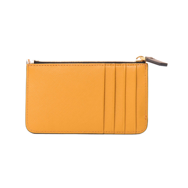 サフィアーノレザー製カードホルダー。1ファスナー式コインポケット、バックに4カードスロット。ゴールドトーンのメタルパーツ。ゴールドのマルニロゴプリント。イタリア製。