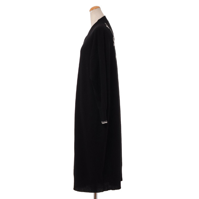 ジェイクベルフォート (JAKE BELFORT) バックプリントVネックワンピース カシミヤハイゲージ ブラックオフホワイト