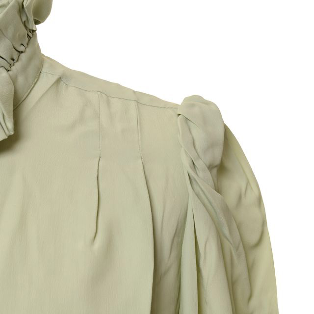 プルーンゴールドシュミット (prune goldschmidt) フリルカラーブラウス アセテートシルククレープ ソフトグリーン
