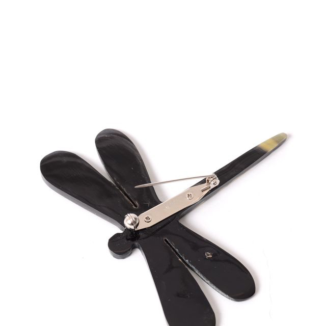 ドラゴンフライ、蜻蛉とんぼのブローチ。深みのあるマーブル柄のブラックでかたどられたとんぼは、ジャケットの胸元やニットにもとてもよく合います。幸運のシンボルの一つでもあります。軽い水牛の角で作られており、温かみのある素材感です。プレゼントにもおすすめです。収納袋付き。※全て天然物による水牛の角のためお色味の風合いなど1点1点異なりますことご了承くださいませ。
