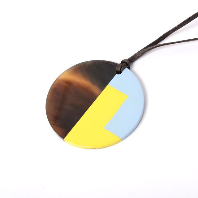 薄い丸に柄入りのネックレス。軽い水牛の角でつくらえたネックレスです。両面お使いいただけます。軽い水牛の角で作られており、温かみのある素材感です。プレゼントにもおすすめです。収納袋付き。※全て天然物による水牛の角のためお色味の風合いなど1点1点異なります。また、着装画も全てイメージとなり実際のアイテムとお色味風合いが異なりますことご了承くださいませ。