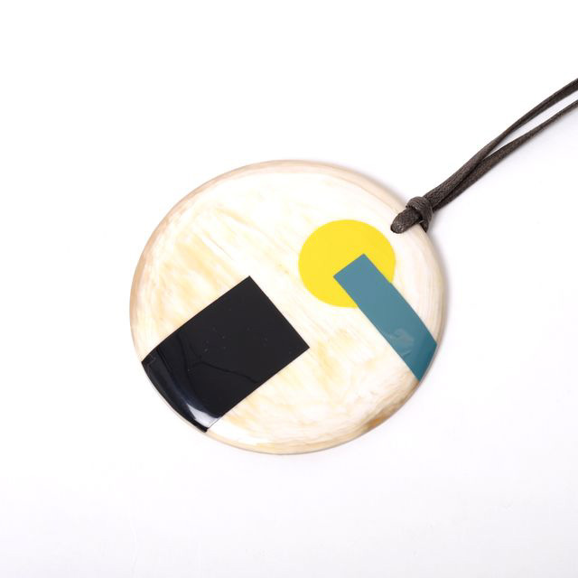加工した丸にプリントしたネックレス。軽い水牛の角でつくらえたネックレスです。両面お使いいただけます。軽い水牛の角で作られており、温かみのある素材感です。プレゼントにもおすすめです。収納袋付き。※全て天然物による水牛の角のためお色味の風合いなど1点1点異なります。また、着装画も全てイメージとなり実際のアイテムとお色味風合いが異なりますことご了承くださいませ。