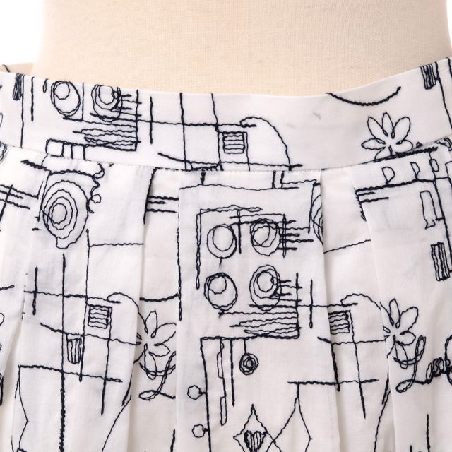 テン (ten.) ミディ丈刺繍スカート コットン ホワイトネイビー