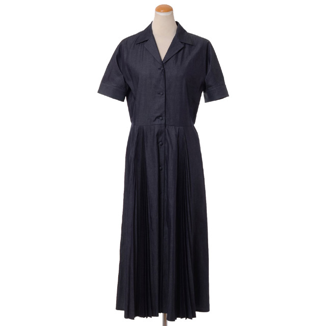 テン (ten.) 襟付き半そでプリーツドレス デニム インディゴ