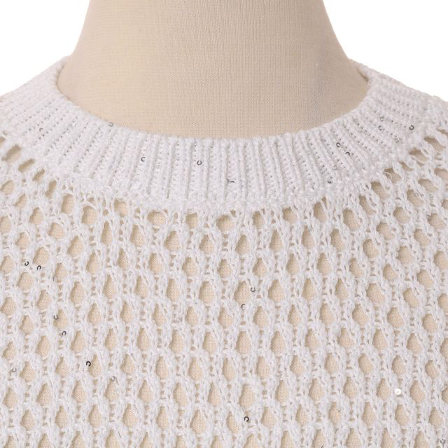 ペゼリコ (PESERICO) 七分袖セーター 透かし編みスパンコール ホワイト