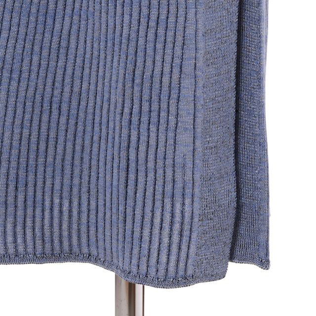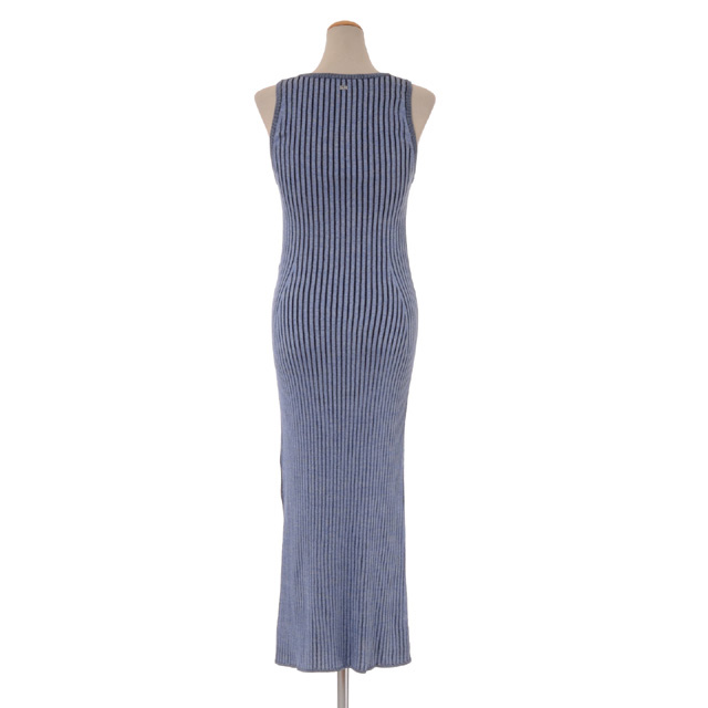 Vネックノースリリブワンピース。ソニアリキエルらしい、エレガントで美しいニットワンピース。細いリブと太いリブを組み合わせたすっきりと見えるニットワンピース。サイドはスパンコールのボタンでスリット入り。きれいなスカイブルーカラーのニットドレス。