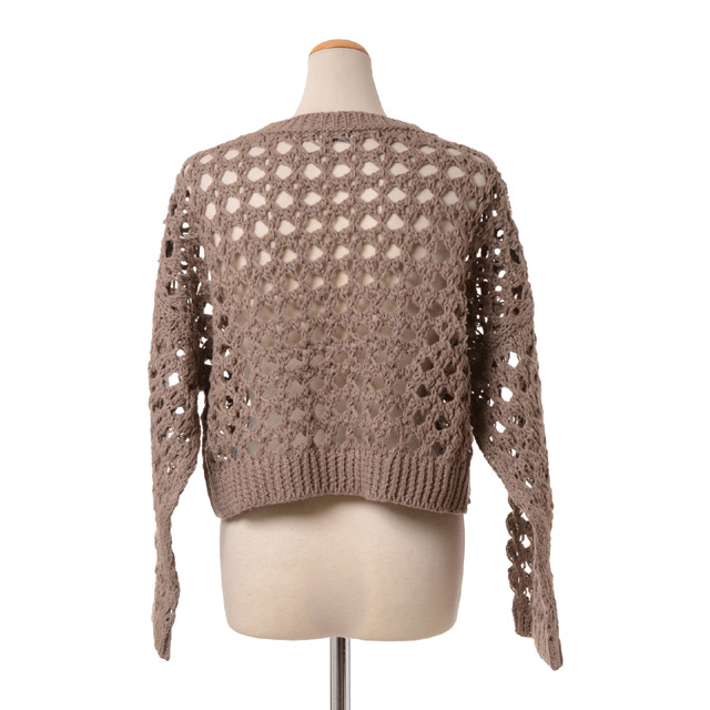 ざっくりとしたメッシュ編み七分袖丈セーターです。高級ヤーンで美しく仕立てた、ジュート&コットンニット製のトップ。洗練されたネット編地で2種類のヤーンを組み合わせて、立体的でエアリーな風合いを作り出しました。クロップ丈とゆったりとしたフィット感が現代的なテイストのポイントとなっています。