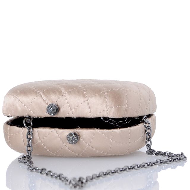 フィロソフィディアルベルタ・フェレッティリゾート2013。サテン地で作られたコロンとしたパーティバッグ。クラッチバッグよりもミニサイズで、チェーン付き。滑らかなサテン素材のラグジュアリーなビジューバッグ。
