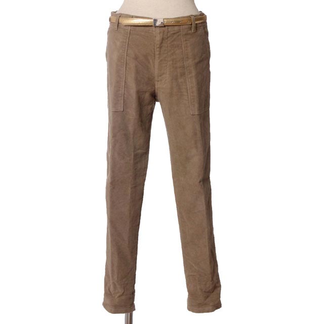 ゴールデングースのコットンパンツが入荷。ラインの美しいパンツ。サルエル風で股上深め。柔らかみのあるカーキカラー。大き目なポケットがキュートなパンツ。ふわふわとした感触のコットン素材。ファスナーで開閉。キレイなシルエット。ロールアップして履きたいアイテム。綺麗に着こなせるハイカジュアルなパンツです。付属でゴールドベルト付。